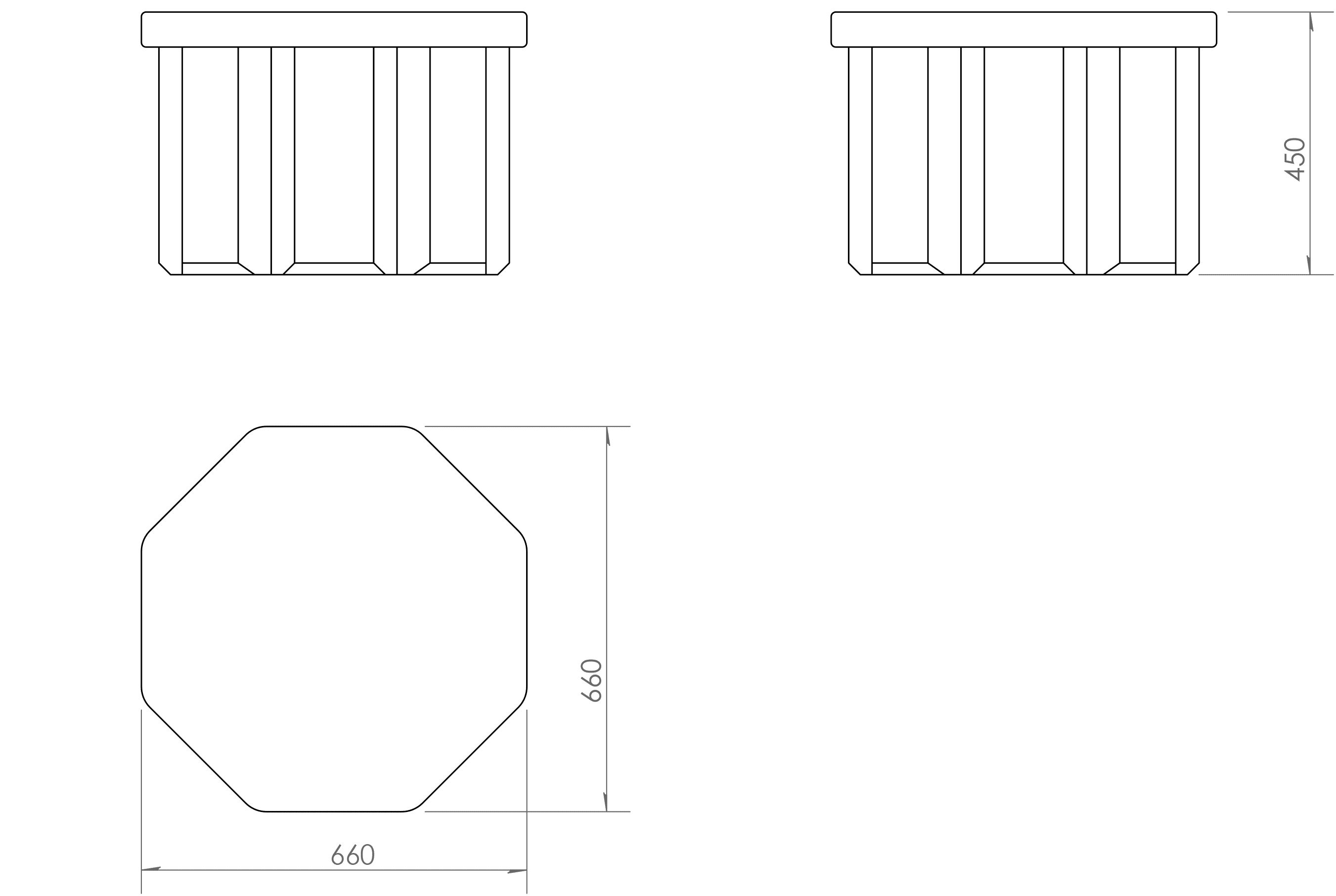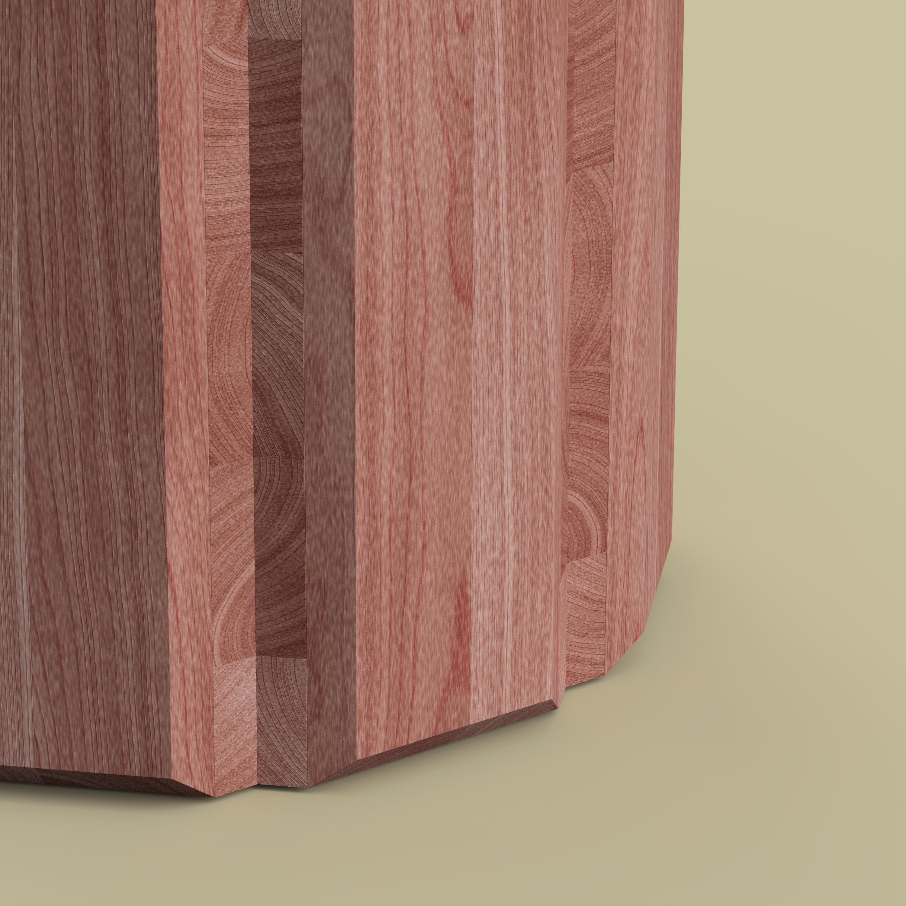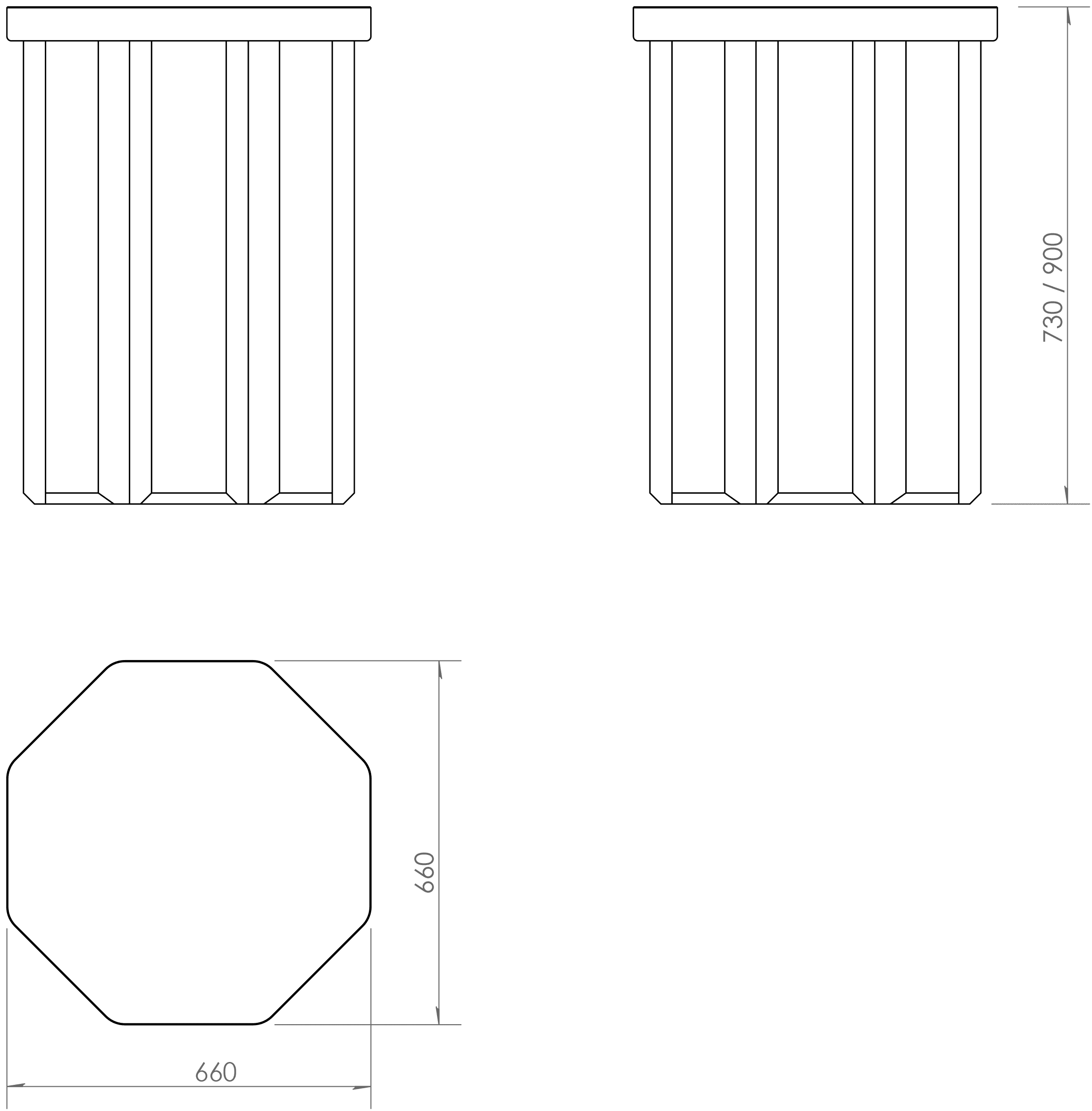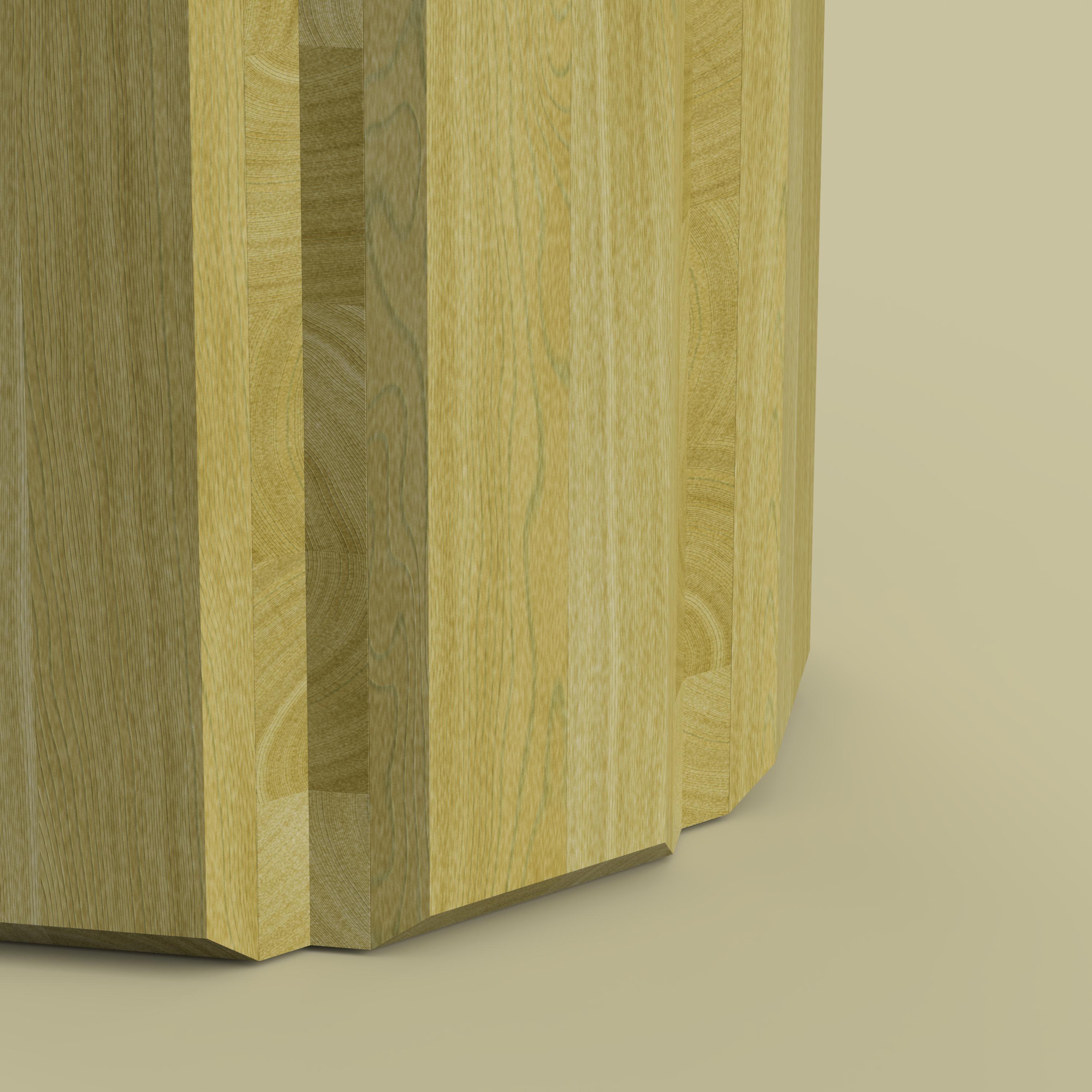 Oktagon är en möbelserie bestående av pelarbord och pall samt underrede till konferensbord. Möbeln kan tillverkas i allt från 60 till 140 mm KL-trä.